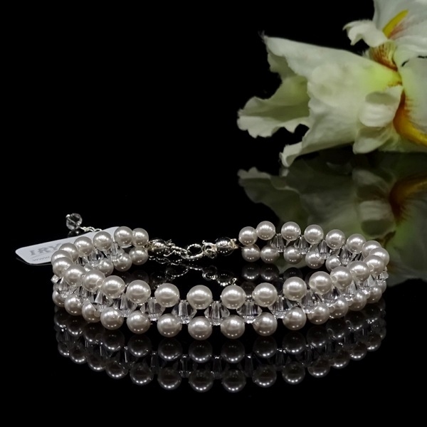 Bransoletka bardzo ładnie wypleciona przy użyciu kryształów i pereł 4 mm .