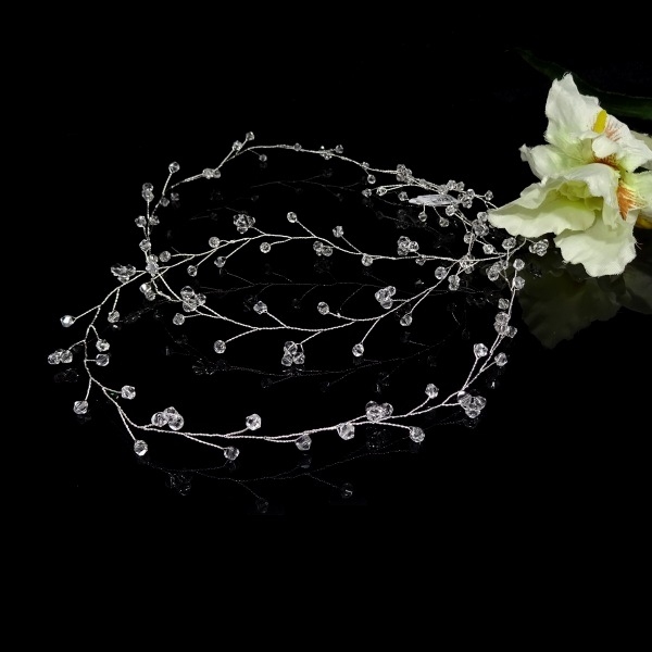 Pięknie wyplecione szklane kryształki na druciku jubilerskim w kolorze jasnego srebra.
