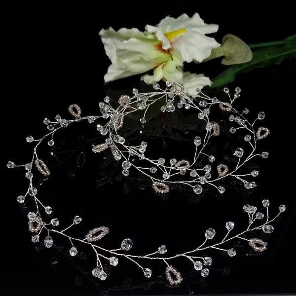 Kryształki rozmieszczone naprzemiennie, dzięki czemu gałązka jest delikatna i idealnie nadaje się do warkocza lub kłosa.